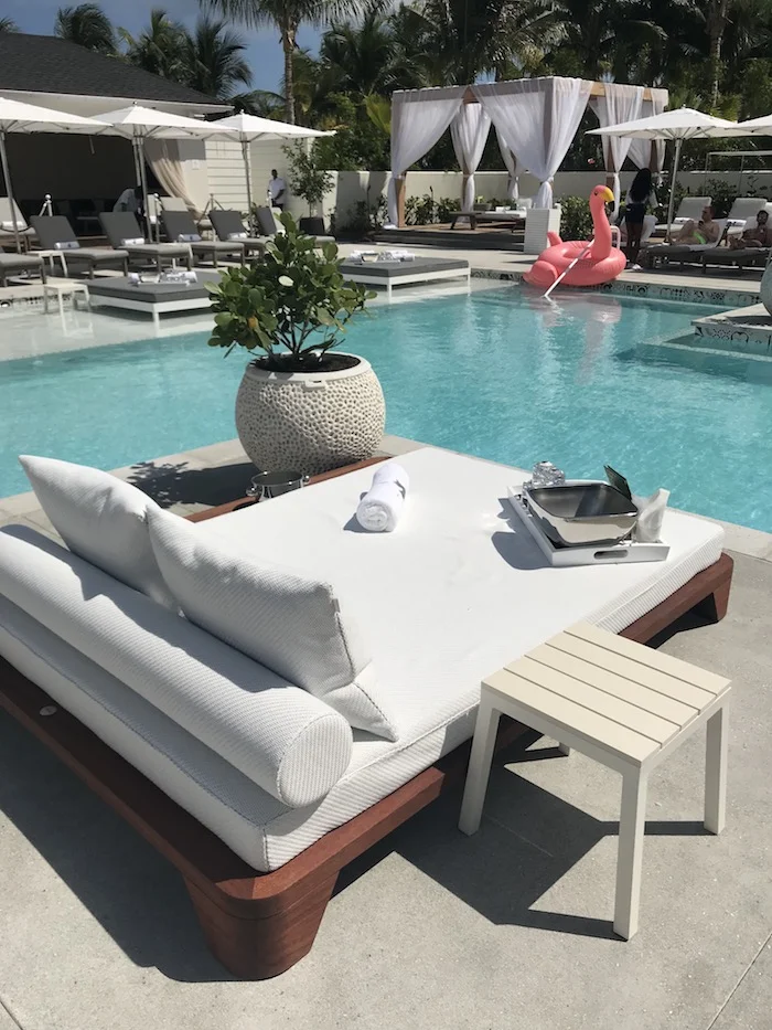 My friend and I spun around on giant flamingo pool floats as the DJ mixed Justin Timberlake’s “Sexy Back” with Marky Mark and the Funky Bunch’s “Feel the Vibration.” A live drummer added his own layer of percussion as hotel guests grooved to the beats in the shallow end of the pool, waving their craft cocktails in the air. The daytime party at SLS Baha Mar’s adults-only pool, Privilege, was just getting started—and it was about to get a whole lot rowdier.